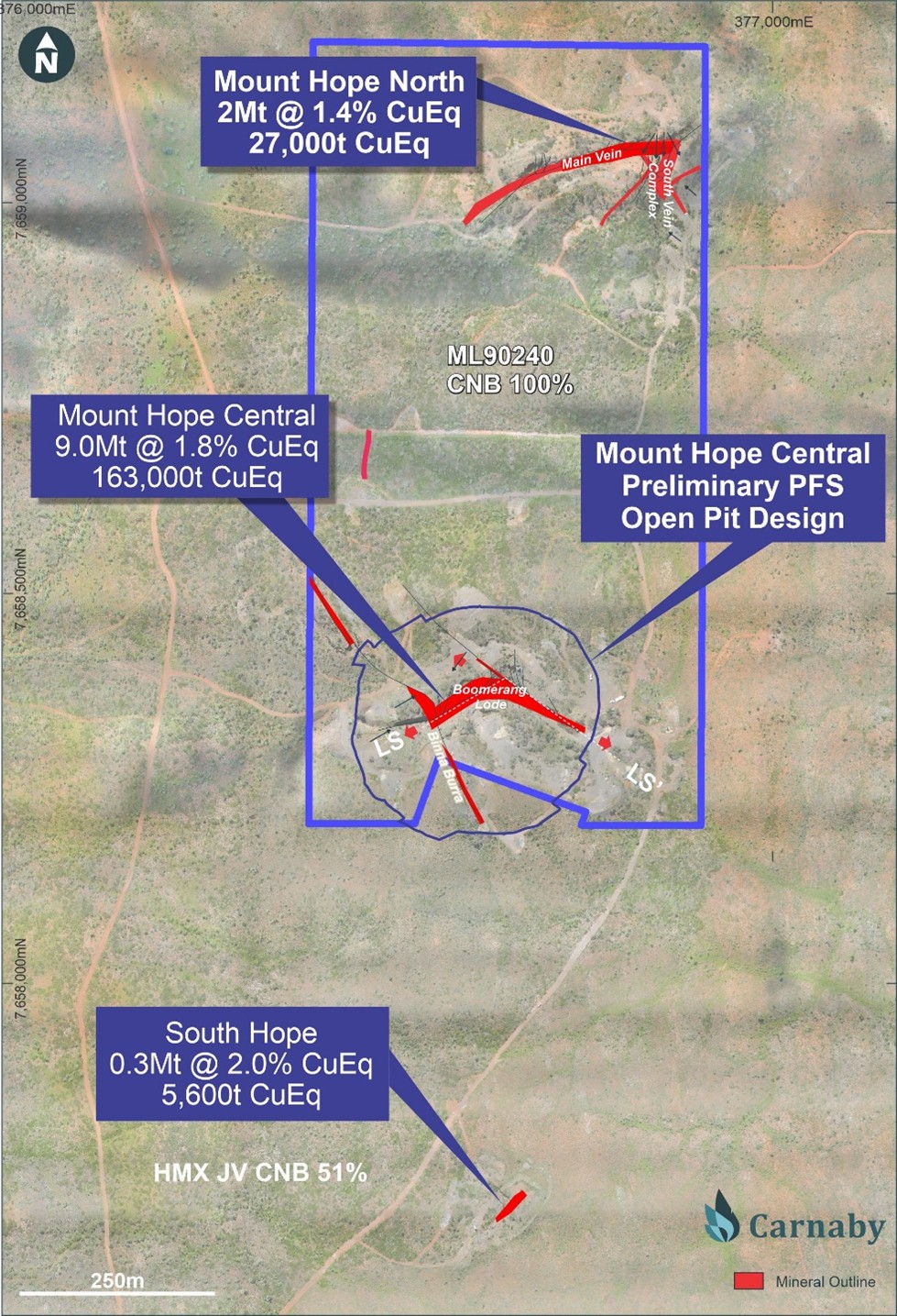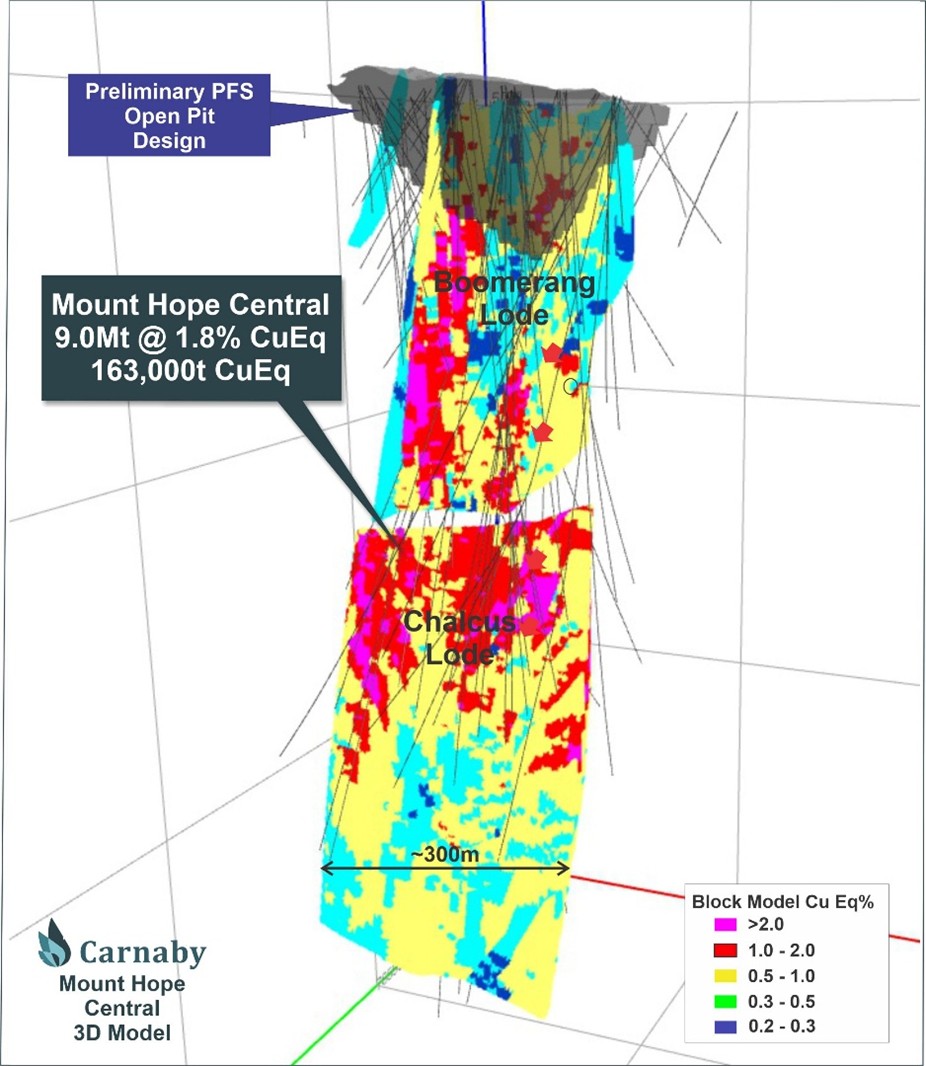 Mount Hope Deposits (100%) – 11.2Mt at 1.7% CuEq