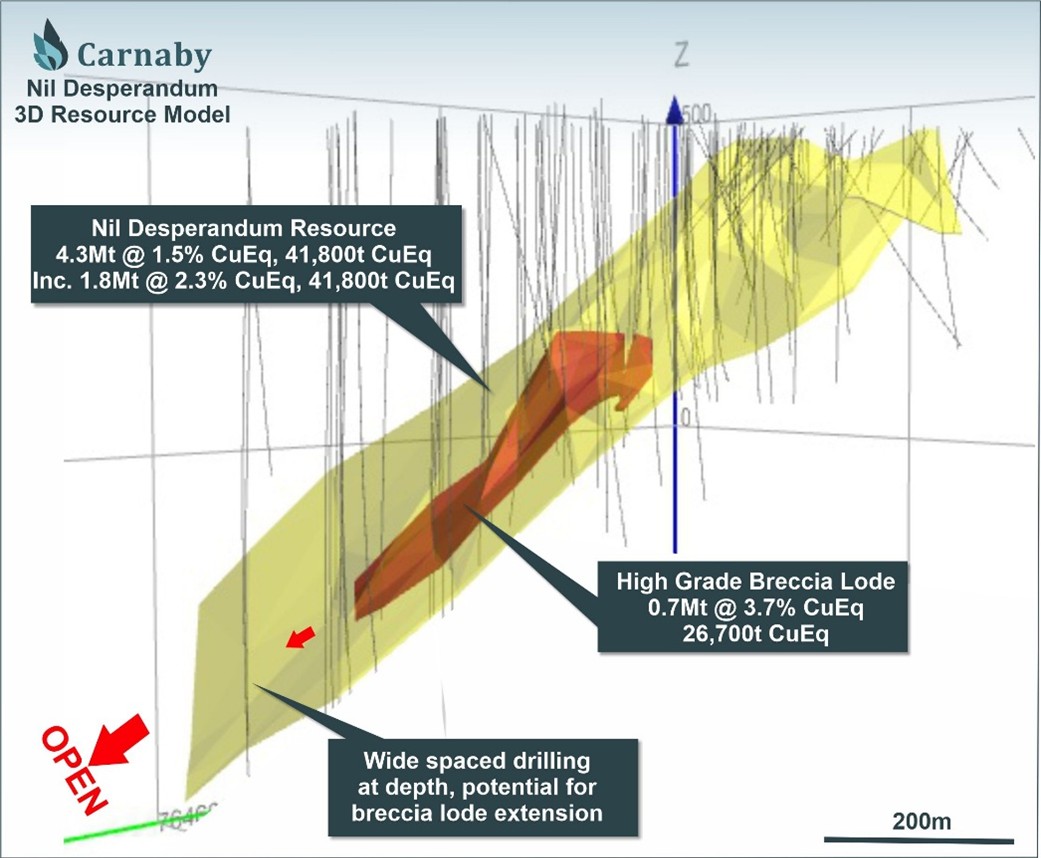 Nil Desperandum Deposit (100%) – 4.3Mt for 1.4% CuEq