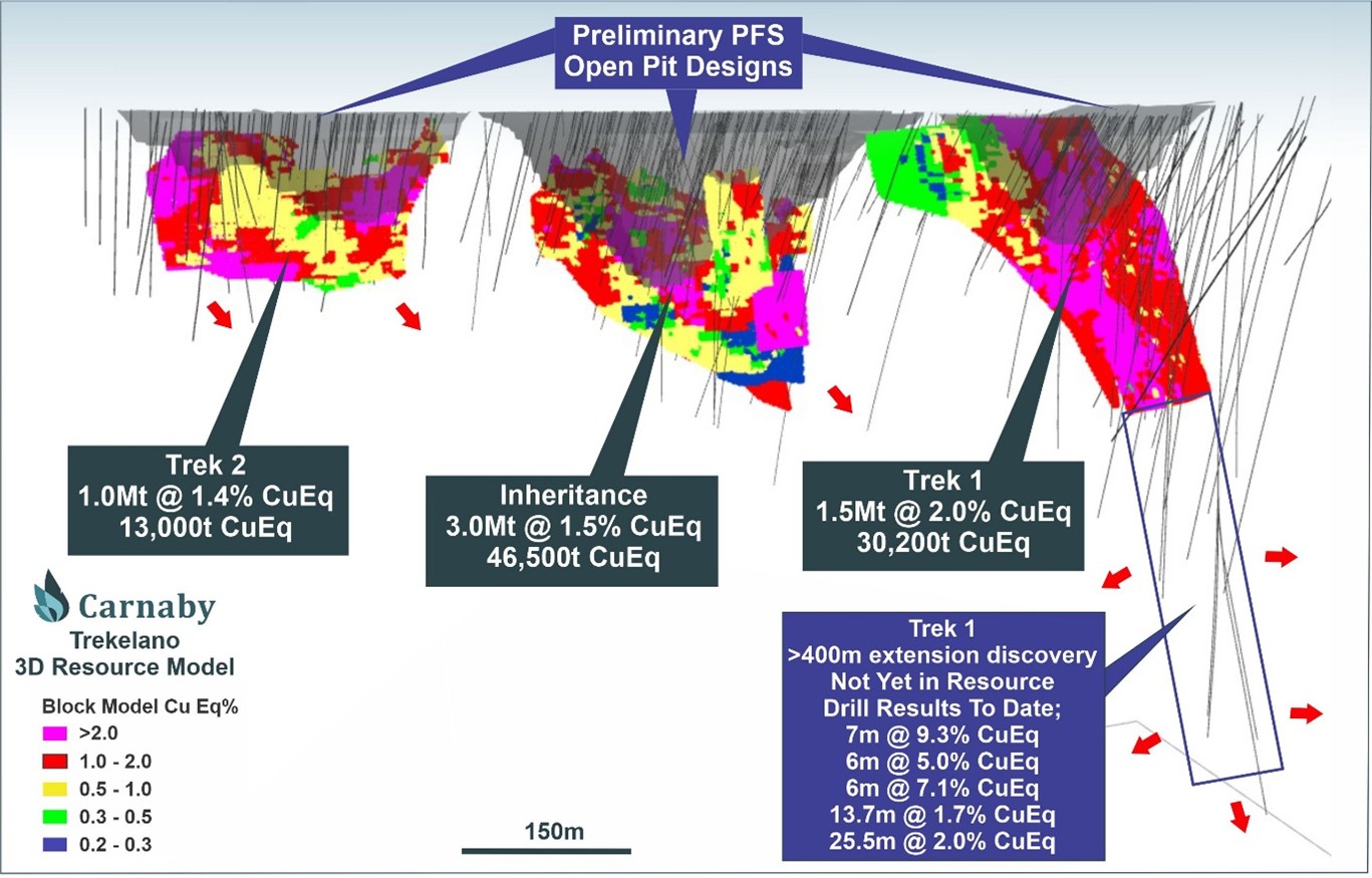 Trekelano Deposits (100%) – 5.5Mt at 1.7% CuEq